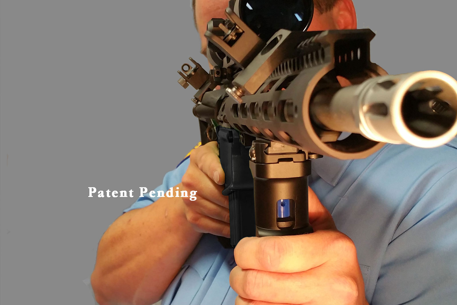 *The constant presence of the non-lethal compliance device on the firearm aligned with the muzzle