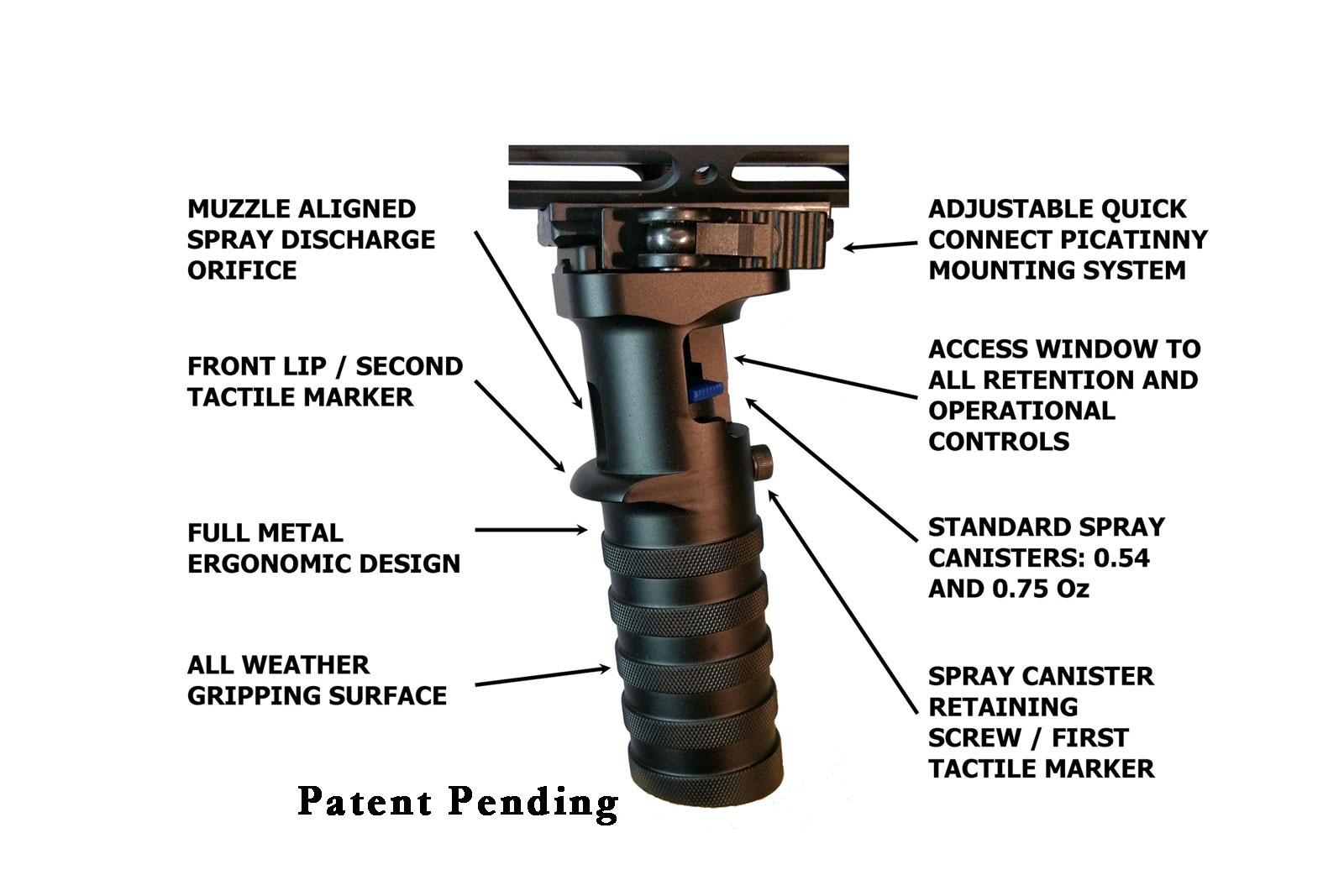 *The Compliance Grip utilizes an industry standard Picatinny railing system and quick connect function that opens possibility for first responders scenarios